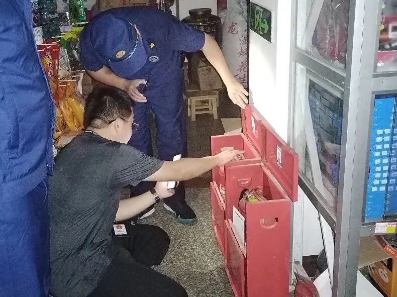 在淼贵超市检查现场,检查人员重点对灭火器、消防栓、物资仓库进行了细致检查,查看灭火器是否在有效期内、压力是否正常、是否符合配置要求等,确保关键时刻“拿得出、用得上”。同时对超市周边开展延伸检查,针对摩托车违规加装遮阳棚问题,依法责令限期拆除并签订安全承诺书,进一步为雨夜消防安全筑牢防线。