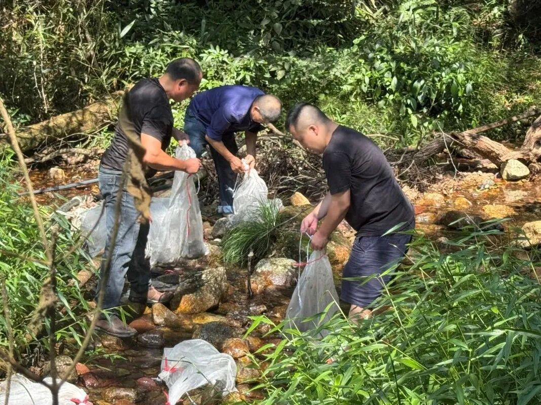 此次增殖放流行动经过周密筹备与科学规划,精准投放规格适宜、体质健壮的棘胸蛙苗1万只。棘胸蛙对水质要求极高,是反映水体健康状况的“指示物种”,同时也是水环境的“天然守护者”。它们通过捕食昆虫、水生幼虫等生物,有助于控制有害生物数量,调节河道生物群落结构,促进水域生态平衡,推动构建稳定健康的河道生态系统。