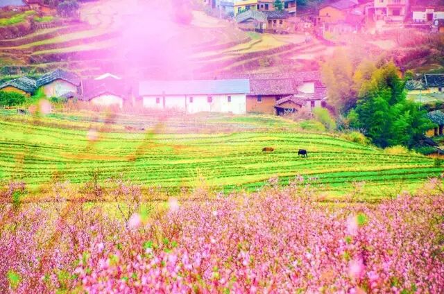 武平县城厢镇尧禄村200多亩桃花迎春盛开,争奇斗艳,置身于这片梦幻般的桃花林,仿佛是个童话般的粉色世界,花期至3月中下旬。尧禄村除桃园外,还有梯田风光、天马寨清代古城堡建筑群、原始森林等美景。